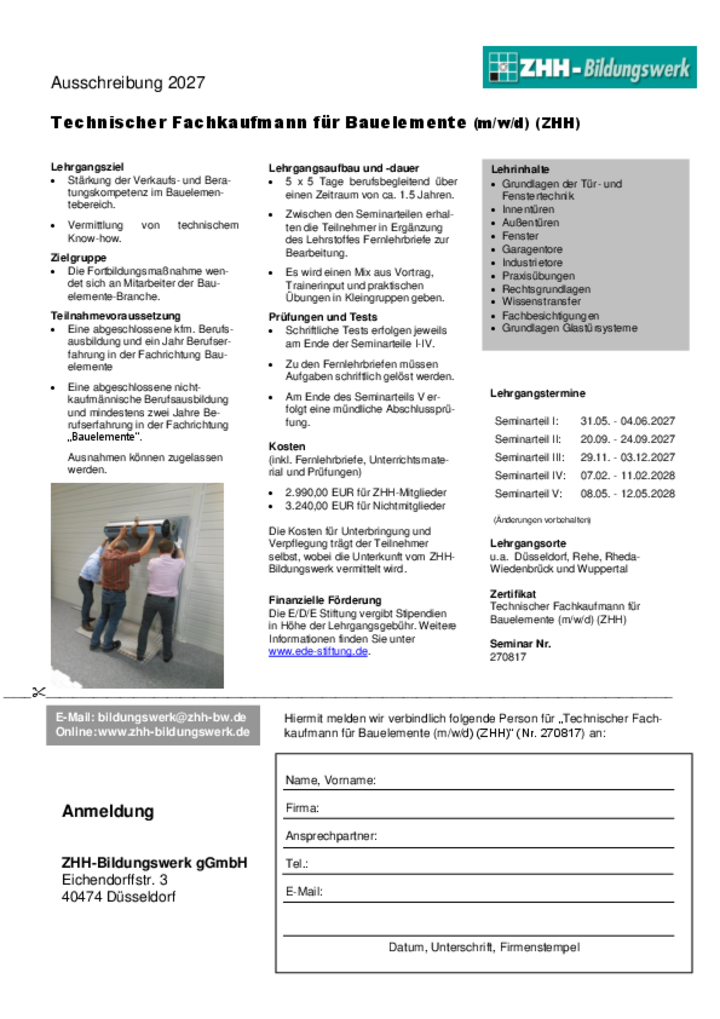 Technischer Fachkaufmann für Bauelemente m/w/d (ZHH)